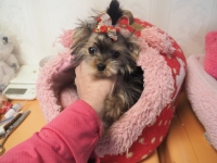今回、とても可愛いヨークシャーテリアをお譲りして頂きました。ブリーダーさんはとても明るく気さくな方です。大切に育てているのがとても分かりました。 非常に良いに出来なかったのは、メールでのお問合わせがスムーズではなかったです。連絡がなければお電話で問い合わせをオススメ致します。少し不安な日々を過ごしていましたが、当日の見学を承諾して頂けてお電話ではとても融通の効くブリーダーさんで助かりました。過度なアピールなども無く、紹介文などに書いてあることなどが真実だと信頼できました。(性格や現在の大きさ、特徴など) わんちゃんはとてもとても素晴らしいわんちゃんで、長旅でしたので帰宅してから獣医さんにも診てもらいましたが、とっても元気のいい子で噛み合わせも何も問題なくお墨付きを頂きました。ご飯もよく食べ、トイレも完璧です。本当に素敵な出会いをありがとうございました。大切に大切にこの子と幸せな毎日を送りたいと思います。(神奈川県 女性)