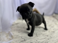 今日、黒パグ(雄)を見学に行きました。これまで、パグのフォーンとブラックを飼ってきましたが、どちらも雌でおとなしかったので、できれば雌がいいなという思いと、雄で大丈夫かなという不安があり、とりあえず見学のつもりで出かけました。見せて頂いた黒パグは表情豊かでとても可愛いく、本間さんとお話している間にすっかりなついてしまい、不安もなくなり購入を決めました。本間さんには、爪の切り方や耳そうじの仕方、歯磨きやえさの与え方、しつけまで丁寧に教えて頂きました。これまでは忙しくてきちんとしつけができなかったので、とても参考になりました。そのまま連れて帰りましたが、夜帰宅した夫も息子も新しい家族をみてとても喜んでいました。本間さん、本当にありがとうございました。(栃木県 女性)