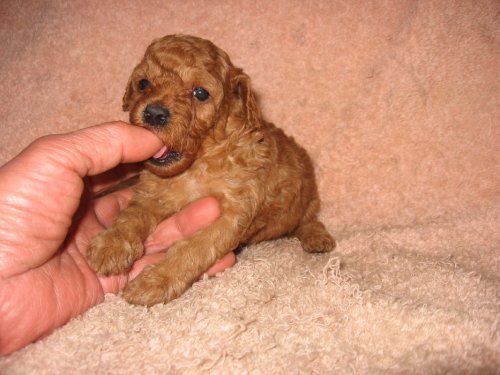 | コメント | お父さんは2,8kのレッド アメリカチャンピオンの直子です お母さんは3,8kのレッド お母さん食欲旺盛で仔犬は良く太っています この子の体重は2/6で610gです 噛み合わせは正常 ヘルニアもありません これから段々可愛くなると思います |