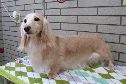 | コメント | ママのタフィー(クリーム)、パパのヴァイス(ブラック&クリーム)から誕生した 綺麗なブラック&クリームの男の子です。 血統はとても良く英国系の抜群の血統です。 代々ロングヘアードのブリーディングですので、他の毛種 (スムース、ワイアー)の血統は入っておりませんので、ご安心下さい。 今まで出産したママのタフィーとパパのヴァイスの子供達は 穏和な性格でとても賢く、ママのタフィーとパパのヴァイスの力強い四肢、 綺麗で美しい毛質と可愛いお顔を受け継ぎ素敵な子になっております。 ご質問、ご相談などありましたらどうぞ遠慮なさらず何でもご相談下さい。 |