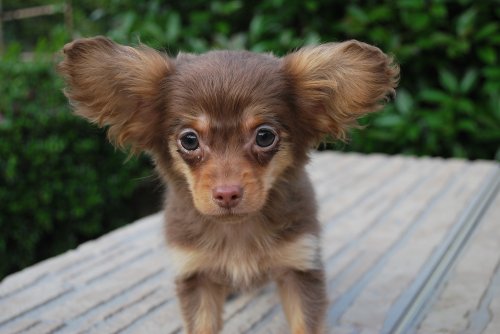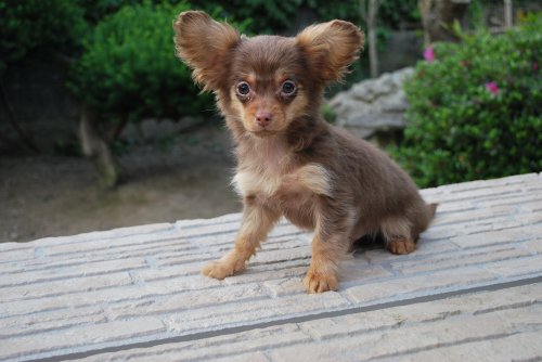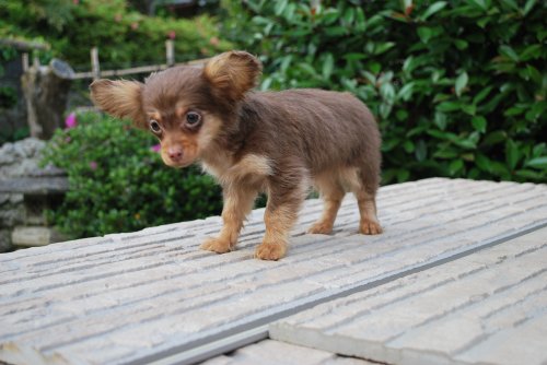 | コメント | チワワ(チョコタン)のママとミニチュアより小さいサイズの カニンヘン・ダックスフンド(チョコタン)のパパから生まれたチワックス。 大きなお耳でメチャクチャかわいいですよ! |