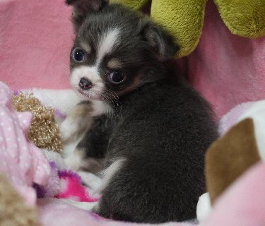 チワワ(ロング) ブルータン&ホワイト レアカラーでお顔良し ♀(女の子) 埼玉県【 ブリーダーズ 】
