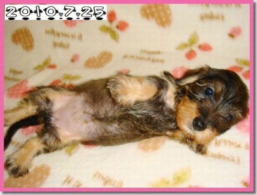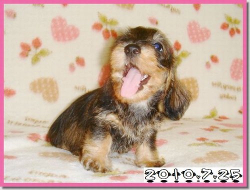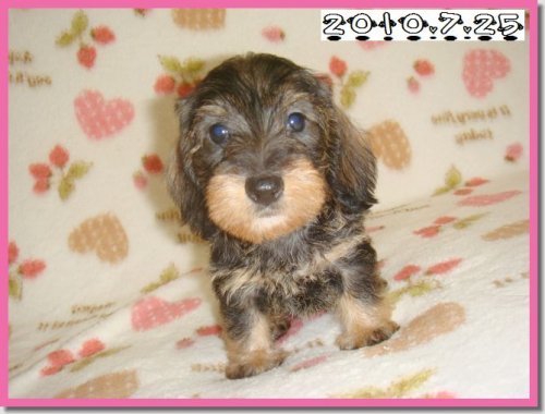 亡くなった愛犬達と同じ、 ワイヤーダックスの子犬を探していましたが、珍しい犬種という事もあり、 なかなか出会えませんでした。 諦めかけた頃、こちらのサイトで可愛い子犬を見つけ、思いきってメールをさせて頂きました。 遠藤ブリーダー様の迅速丁寧な対応で、 お陰様で無事に子犬を迎える事が出来ました。 本当にありがとうございました。 ブリーダーズ様にも感謝致します。 (北海道 女性)