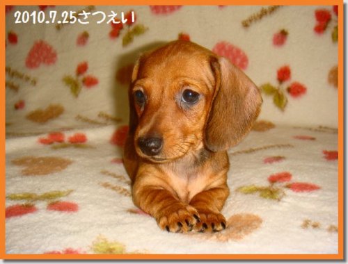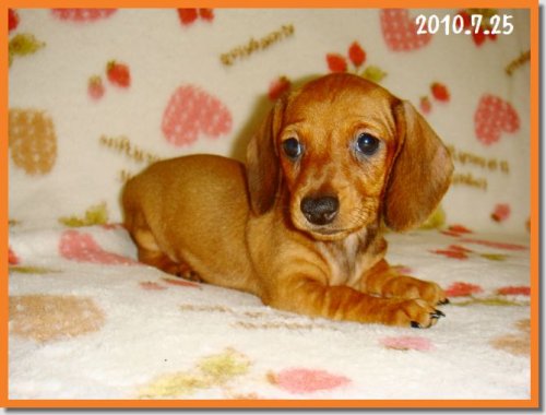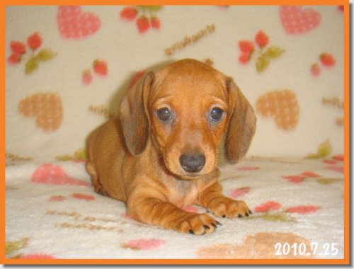 亡くなった愛犬達と同じ、 ワイヤーダックスの子犬を探していましたが、珍しい犬種という事もあり、 なかなか出会えませんでした。 諦めかけた頃、こちらのサイトで可愛い子犬を見つけ、思いきってメールをさせて頂きました。 遠藤ブリーダー様の迅速丁寧な対応で、 お陰様で無事に子犬を迎える事が出来ました。 本当にありがとうございました。 ブリーダーズ様にも感謝致します。 (北海道 女性)