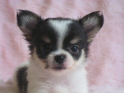 | コメント | お顔のとっても可愛い子犬が産まれています。 父:JKC CH直子 母:JKC CH孫 超有名犬 AM CH DARTAN'S LIL'S RASCAL(C/N スパンキー)のラインブリードです。 お鼻が短くキュッとストップがきいてハッキリとした顔立ちのとっても可愛いお顔です。 (当犬舎のJKC CHヴァイオレットの子犬時代にそっくりです♪) これからどんどん可愛くなってきます♪ 体型も胴が短くボディーに幅があり、骨太でしっかりしており良質な子です。 (しっかりしているといっても大きなチワワではありません。成犬時2kgぐらいを予想しております。) 向かって左側の口元の黒いラインは成長と共に消えてなくなります。 性格もとても良く人間や犬が大好きで、ちょこちょこ寄ってきては体を寄せてくるとっても愛嬌があります。 お腹をすぐに出す従順な性格。 なでているといつの間にか寝てしまうほど。 おっとりしていて癒し系な可愛い性格の子です。 離乳食もお腹がはちきれそうになるぐらいとってもよく食べてくれます。 現在スクスクと成長中です。 当方にお残しも検討していますので、急遽募集をとりやめることもありますことをご了承くださいませ。 お引渡しは生後2ヶ月過ぎより可能です。 お近くの方は是非ご見学にお越しください。 どのような小さな事でもお気軽にお尋ねくださいね。 |