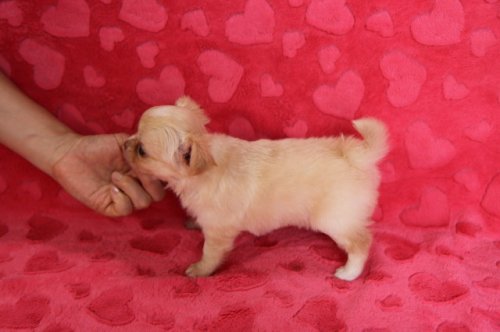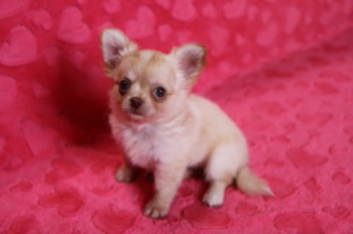 | コメント | 父親:ブラックタン&ホワイト(チャンピオン直子)1.8キロ 母親:クリーム(良血統)1.7キロ ◆現在の体重は520グラム。 ◆帝王切開(2頭兄妹)で産まれました。 ◆小さい仔ですが元気一杯に育っております。 ◆足の短いタイプで大きくなる仔では有りません。 ◆小さいチワワをお探しの方宜しくお願いします。 |