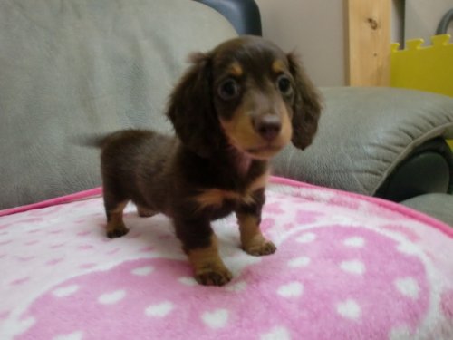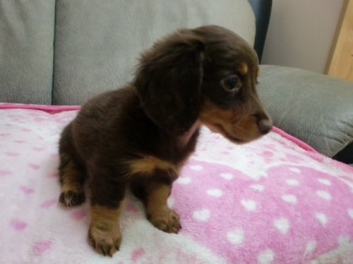 ミニチュア・ダックスフンド(ロング) チョコタンロング:小振り男の子。ワクチン・健康診断済で空輸OK。 ♂(男の子) 熊本県【 ブリーダーズ 】