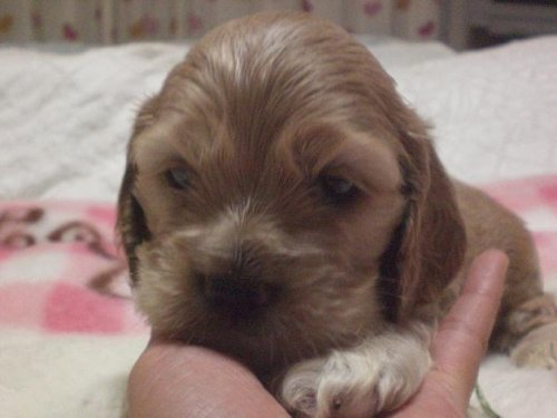 先日こちらのブリーダー様よりA・コッカーの女の子を迎えました。 お電話やメールでの対応も気持ちよく、実際お会いした印象もご夫婦共に素敵なブリーダー様でした。 たくさんの愛情を注いで育てられている事が、母犬や子犬を見てすぐ分かりました。母犬に会えるという事は、子犬を迎えるにあたり非常に重要だと思います。(ママ犬も兄弟犬も可愛かったです。) 迎えたコは、非常にコッカーらしい懐っこい元気な子犬で、家の中が本当に明るくなりました。このコに出会えた事に感謝です。(東京都 女性)