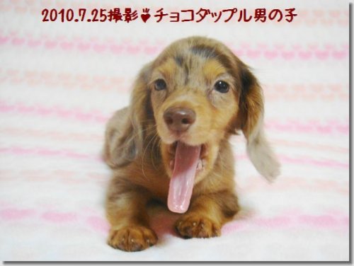 | コメント | 父:JKCチャンピオン(チョコレートタン)×母:シルバーダップルです。 子犬ちゃんは小さなチョコダップルの男の子でとても元気で明るい性格のボクちゃんです。歯のかみ合わせがちょっと出っ歯ちゃんなので、お求めやすい金額にてお譲りできます。健康上や日常生活には全く支障はありません。人間と同じでわんちゃんにもいろいろな子がいますが、ちょっと歯並びが悪かったりするのもその子のチャームポイントとしてご理解いただける方にかわいがってもらえればと願っています。噛み合わせ以外の欠点などはありません。健康でとても性格の良い子なので、ぜひお問い合わせください。ワクチン接種済みですので、すぐにでもお迎えいただけます。 |