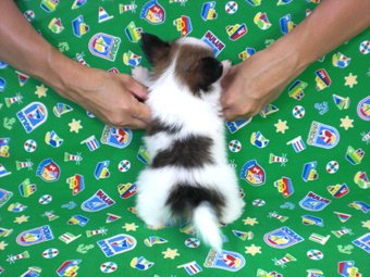 | コメント | 父 JKCチャンピオン直子 毛色:白茶(ホワイト&レッド) インターナショナルチャンピオンエミールと インターナショナルチャンピオンポーカーフェイスというパピヨンの名犬の血統 母 JKCチャンピオン孫 毛色:白茶(ホワイト&レッド)イギリスチャンピオンアークの血統。 イギリス系×スエーデン系の理想的 なアウトラインブリードです。 成長時の予想体重は2~2.5キロ 現在好ましくないかみ合わせ、ヘルニアはありません。欠点が出てきた際は改めてお知らせいたします。こちらはパピヨン一筋46年の専門犬舎です。ご見学は大歓迎ですのでどうぞご連絡の上、おいでください。なるべく輸送でなく直接のお引取りを希望しております。よろしくお願いいたします。 スタッフの取得資格 (社)JKC全犬種審査員 2名(社)JKC 単犬種パピヨン審査員 (社)JKC スチュアート(社)JKC A級ハンドラー1名 C級ハンドラー1名 (社)日本愛玩動物協会 愛玩動物飼養管理士1級 1名 2級2名 (学)AIK 認定グルーマーライセンス(学)AIK 家庭犬しつけインストラクター(社)ICC キャットグルーマーライセンスB級 動物の愛護及び管理に関する法律による動物取扱責任者 3名 |