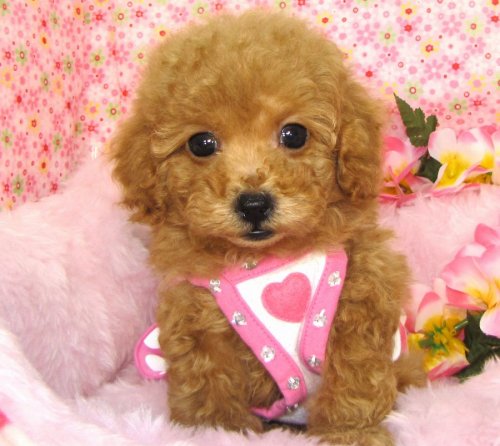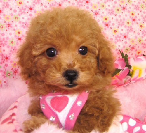 | コメント | 生後2ヶ月で730グラムの女の子です。 成犬時の予想体重は3キロの小柄な子です。 毛の色がレッドとアプリコットの中間ぐらいでやさしいイメージに見えます。 もちろんおとなしくてやさしい性格の子です。 毛量が多くかわいいテディーベアーカットができます。 食欲旺盛で、いつもお腹はパンパンになるまで食べていますのでご安心ください。 性格はちょっと控えめです。 人間が大好きで、抱かれるのは大好きです。 父親 : 1.8キロ レッド 母親 : 2.4キロ レッド うちの子犬は全員トイレのしつけ済み。見学に来た人は「ちゃんとトイレでしてるーっ。おりこうだねー。」と皆さん感心していらっしゃいます。 ペットショップなどで見かける、ウンチの上で平気で寝ているような子犬を飼うと、おうちでのトイレのしつけはかなり難しくなります。 犬は心のパートナー。 「吠えない、噛まない、かじらない。」はあたり前。 家庭や一般社会の中でみなさんにほめられる、すばらしい犬。 最高にマナーの良い犬に育てられるよう、1時間ぐらいしつけのお話をさせていただきます。 犬の気持ちや本能が理解できて、必ずいい子に育てられます。 家族全員でおいでください。 茨城県龍ヶ崎市。高速を降りたらどこも曲がらず一直線に8~9キロです。 東京から1時間ちょっと。4車線の大通りに面しているのでカーナビ一発で来ます。 電車の場合は決まらなくても必ず送迎しますのでご連絡ください。 |