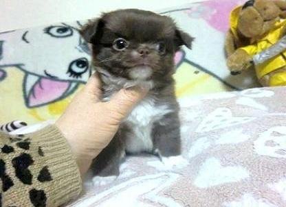 | コメント | とても可愛いレアカラーの男の子です。 珍しいソリッド系(タン無し)の男の子です。 それも、お顔はペッタンコで手足も短く可愛いです。 パパのナイト君(ブラックソリッド)と似たお顔ですから、 口太でけっしてキツネ顔にはなりません! パパ ブラックソリッド 1.8キロ 6ヵ国CH孫 ママ フォーン 2.3キロ ナイト君の子供は、皆2キロ前後の小さな子が多いです。 この可愛さを是非ご見学でお確かめ下さい。 他にも自信の可愛い子をご紹介しています。 その他の仔犬も是非ご覧下さいね! |