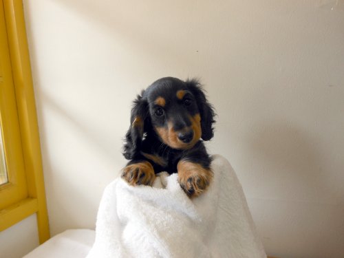ミニチュアダックス スムース ブラックタンの子犬を探しまくる中、ブリーダーズさんのサイトから上山ブリーダーさんに辿り着きました。問合せ後すぐに連絡を頂き訪問に至る迄の間、度重なる問合せにメール、電話にて毎回本当に親切丁寧にお応え頂きました。神奈川県からでしたが安心して伺う事ができました。子犬対面当日は…なんと可愛い子犬でしょー!毛も艶々で元気いっぱいです!子犬、親犬の事やお世話の仕方、持ち帰り時の注意点等詳しく教えて頂き大切に育ているんだなぁと実感しました。連れ帰った後も子犬の状態を気にして連絡を下さいました。これからも相談させて頂こうと思っています。親切で知識も豊富な信頼できるブリーダーさんです。今回は元気で可愛い子犬をありがとうございました。(神奈川県 女性)