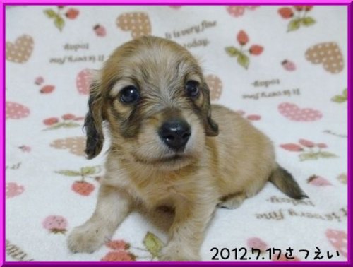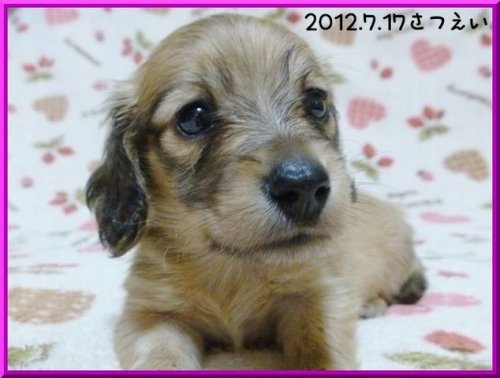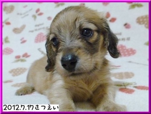 亡くなった愛犬達と同じ、 ワイヤーダックスの子犬を探していましたが、珍しい犬種という事もあり、 なかなか出会えませんでした。 諦めかけた頃、こちらのサイトで可愛い子犬を見つけ、思いきってメールをさせて頂きました。 遠藤ブリーダー様の迅速丁寧な対応で、 お陰様で無事に子犬を迎える事が出来ました。 本当にありがとうございました。 ブリーダーズ様にも感謝致します。 (北海道 女性)
