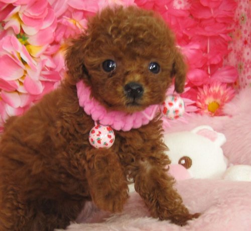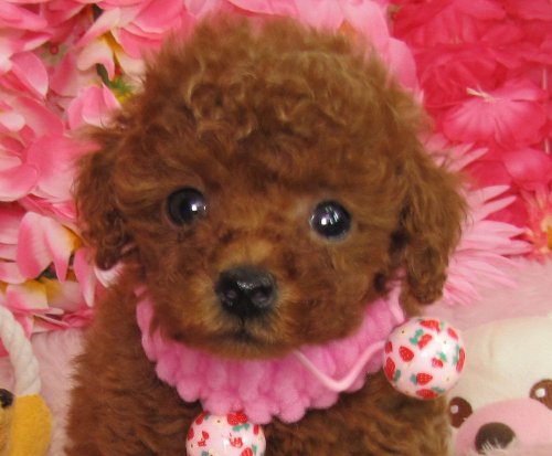 | コメント | レッド・タイニーサイズの女の子です。 毛の巻きが良くて全身巻き巻きの毛質です。 おとなしい性格で飼いやすい子犬です。 生後45日の体重は470グラム。 成犬時の予想体重は2キロ前後のタイニーサイズの女の子になります。 父親 : 1.8キロ レッド 母親 : 2.5キロ レッド 現在たくさん生まれて20匹ほどおりますので、ぜひぜひ見学においでください。 うちの子犬は全員トイレのしつけ済み。見学に来た人は「ちゃんとトイレでしてるーっ。おりこうだねー。」と皆さん感心していらっしゃいます。 もちろんこの子たちもできています。 ペットショップなどで見かける、ウンチの上で平気で寝ているような子犬を飼うと、おうちでのトイレのしつけはかなり難しくなります。 犬は心のパートナー。 「吠えない、噛まない、かじらない。」は室内犬として絶対条件です。 先日「別のペットショップでトイプードル飼って1ヶ月。」 という奥様が飛び込みで来られましたが、「家中のものを噛んでソファーもテーブルの足もじゅうたんも、みんなボロボロにされて、最近は(奥様の)手も噛むようになってきて、怖くなってきた。」とたいへんお困りの相談に来られました。 その場でしつけ方のお話をさせていただきまして、5日後には子犬を連れてきて「やっと抱っこして出られるようになって、家の中でもいい子になりました。」とお礼に来られました。 子犬の性格にもよりますが、このような暴れん坊になってしまうこともあります。 絶対にこのような暴れん坊の犬に育ててはいけません。 家庭や一般社会の中でみなさんにほめられる、すばらしい犬。 最高にマナーの良い犬に育てられるよう、1時間ぐらいしつけのお話をさせていただきます。 犬の気持ちや本能が理解できて、必ずいい子に育てられます。 ご家族全員でおいでください。 茨城県龍ヶ崎市。高速を降りたらどこも曲がらず一直線に8~9キロです。 東京から1時間ちょっと。4車線の大通りに面しているのでカーナビ一発で来ます。 電車の場合は決まらなくても駅まで必ず送迎しますのでご連絡ください。 「見学ご希望があっても、別の方からご予約金の振込みなどがあった場合は、そちらに決まってしまう場合があります。 あらかじめご了承ください。」 |
