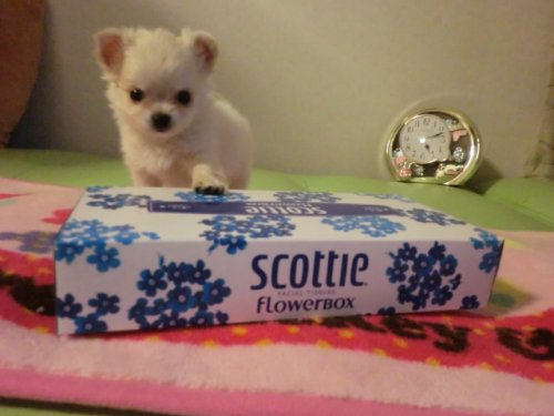 ティッシュ箱と比較。身体バランスもドアーフタイプで人気の極小君