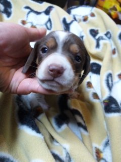 ミニチュア・ダックスフンド(スムース) チョコタンパイボールド ♀(女の子) 愛知県【 ブリーダーズ 】