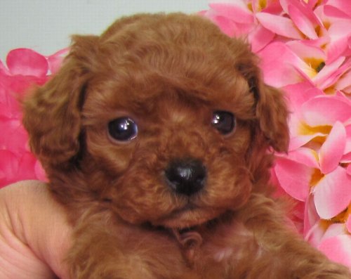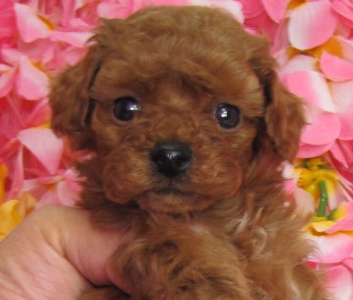 | コメント | たいへん申し訳ないのですが、20日から22日まで連絡が取れない状態になりますので、ご了承いただけましたら幸いです。 濃いレッドで毛量の多い女の子です。 おとなしい性格ですので、静かに過ごしたい方に向いてます。 父親はチャンピオン直子の良血統の子犬です。 毛量も多いので将来はテディーベアが似合うかわいい子になります。 生後42日の体重は500グラム。 成犬時の予想体重は3キロ前後のかわいい子犬です。 8種ワクチン接種1回サービス。 シャンプーなどで使用する、子犬用スリッカーブラシもサービスしております。 各種カードもご利用できます。 父親 : 1.8キロ レッド(チャンピオン直子) 母親 : 2.5キロ レッド 現在たくさん生まれて20匹ほどおりますので、ぜひぜひ見学においでください。 うちの子犬は全員トイレのしつけ済み。見学に来た人は「ちゃんとトイレでしてるーっ。おりこうだねー。」と皆さん感心していらっしゃいます。 もちろんこの子たちもできています。 ペットショップなどで見かける、ウンチの上で平気で寝ているような子犬を飼うと、おうちでのトイレのしつけはかなり難しくなります。 犬は心のパートナー。 「吠えない、噛まない、かじらない。」は室内犬として絶対条件です。 先日「別のペットショップでトイプードル飼って1ヶ月。」 という奥様が飛び込みで来られましたが、「家中のものを噛んでソファーもテーブルの足もじゅうたんも、みんなボロボロにされて、最近は(奥様の)手も噛むようになってきて、怖くなってきた。」とたいへんお困りの相談に来られました。 その場でしつけ方のお話をさせていただきまして、5日後には子犬を連れてきて「やっと抱っこして出られるようになって、家の中でもいい子になりました。」とお礼に来られました。 子犬の性格にもよりますが、このような暴れん坊になってしまうこともあります。 絶対にこのような暴れん坊の犬に育ててはいけません。 うちでは基本的に子犬は必ず1匹ずつゲージに入れて展示しています。 以前は母犬や兄弟から離れて寂しさでキャンキャン泣き続ける子犬がいたので、かわいそうだから2匹ずつ入れていました。 ところがこの状態で皆様のご家庭に1匹だけで飼われたときに、寂しさから夜中でもキャンキャン泣き続ける子犬がおりました。 そこで今では必ず1匹だけでケージに入れて置くようにしております。 これで「一人で生活する。」 ということに慣れた状態でお引渡しになりますので、皆様のお宅でキャンキャン泣いて騒がせることはほとんどなくなりました。 家庭や一般社会の中でみなさんにほめられる、すばらしい犬。 最高にマナーの良い犬に育てられるよう、1時間ぐらいしつけのお話をさせていただきます。 犬の気持ちや本能が理解できて、必ずいい子に育てられます。 ご家族全員でおいでいただけましたら幸いです。 茨城県龍ヶ崎市。お車の方は常磐高速→ 圏央道2つ目(牛久阿見龍ヶ崎)を降りたらどこも曲がらず一直線に8~9キロ。左に看板が見えてきます。 東京から1時間ちょっと。4車線の大通りに面しているのでカーナビ一発で来ます。 電車の場合は常磐線佐貫駅東口。決まらなくても駅まで必ず送迎しますのでご連絡ください。 「見学ご希望があっても、別の方からご予約金の振込みなどがあった場合は、そちらに決まってしまう場合があります。 あらかじめご了承ください。」 |