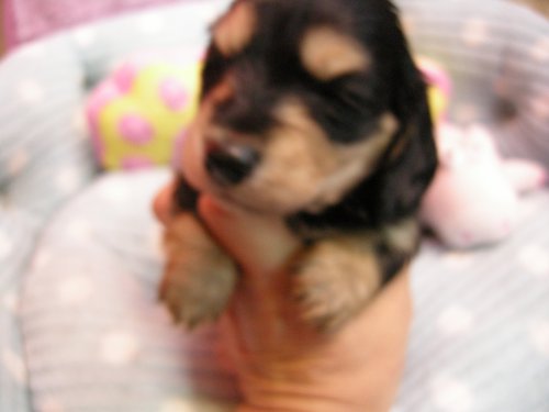 ミニチュア・ダックスフンド(ロング) ブラッククリーム!お父さんも祖父も曾祖父もチャンピオン!お母さんPRAクリアー! ♀(女の子) 大阪府【 ブリーダーズ 】
