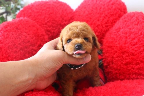 本日、我が家に小さな可愛い女の子のトイプードルがやって来ました。 遠距離という事もあり、暑い時期、飛行機の事なども心配していましだが、家に着いた途端、元気に走り、食欲も旺盛で、今まで大切に育てられてきたのだなぁ、ということがよくわかりました。 連休中にも関わらず、戸田様には、伊丹空港まで連れて来て頂き、こちらの質問にも的確に答えて下さいました。 大変信頼できるブリーダーです。 遠距離で悩まれている方も、安心して新しい家族を迎えられますよ。(兵庫県 男性)