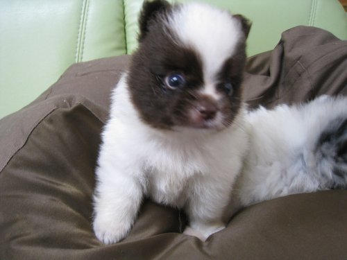 ポメラニアン チョコアンドホワイト ♂(男の子) 岡山県【 ブリーダーズ 】