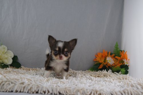 チワワ(ロング) チョコレートタン&ホワイト(両親共に良血統ですよ!)超極小サイズ! ♂(男の子) 大阪府【 ブリーダーズ 】