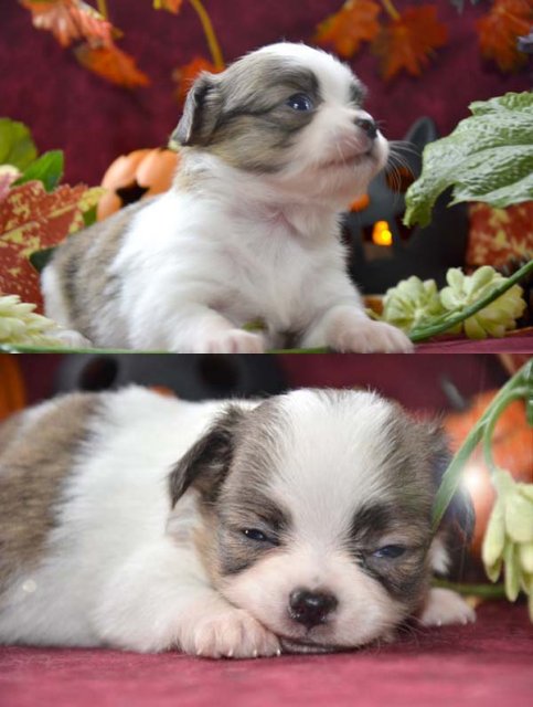 チワワ(ロング) ホワイト&ブリンドル (パーティ) ♂(男の子) 大阪府【 ブリーダーズ 】