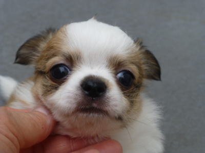 可愛過ぎる仔犬ちゃんに一目惚れし急だったのにも拘らず快くお邪魔させて頂きました。犬舎も大変綺麗でパパ犬ママ犬にも対面出来てブリーダー様のチワワちゃんに対する愛情をとても感じました。譲って頂いた仔犬ちゃんは自宅に到着後、先住犬が居ても物怖じする事無くフードをパリパリと食べトイレを外す事もなく出来元気に遊んで過ごしてました。可愛い仔犬ちゃんを譲って頂いて有難う御座いました。これからも時折成長過程を報告しますね。(静岡県 女性)