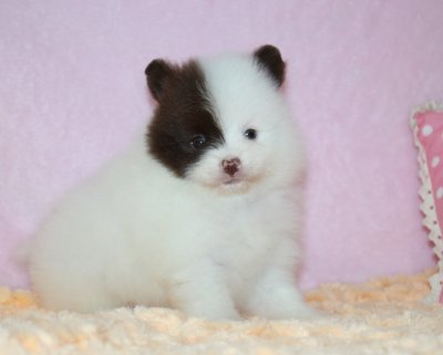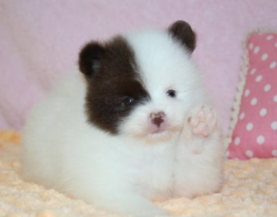 ポメラニアン ホワイト&チョコ ♂(男の子) 埼玉県【 ブリーダーズ 】