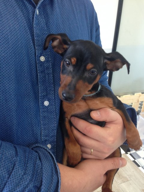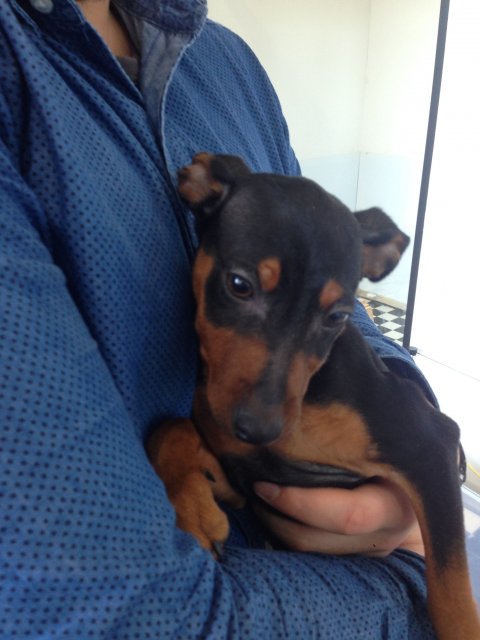 | コメント | ミニチュアピンシャーの優しい顔立ちの男の子です。 父親ブラック&タン、母親ブラック&タン。 5兄弟のとても甘えっ子なかわいい子です。兄弟の中では、一番身体が大きく骨がしっかりしてます。 家族で大切に育ててますので、たくさんの愛情を注いでくださる家族を募集中です。 只今家庭でのトイレトレーニング中です。 お気軽にお問い合わせください。 |