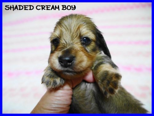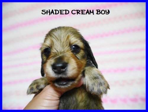 ミニチュア・ダックスフンド(ロング) シェーデットクリーム(パパはカナダチャンピオン) ♂(男の子) 千葉県【 ブリーダーズ 】