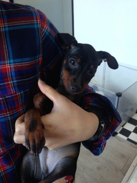 | コメント | ミニチュアピンシャーの優しい顔立ちの男の子です。 父親ブラック&タン、母親ブラック&タン。 サイズが一番小振りな子です。身体は小さいですが他の仔犬に負けず、とても元気な子です。 顔立ちもお母さん譲りのイケメン君です。 家族で大切に育ててますので、たくさんの愛情を注いでくださる家族を募集中です。 只今家庭でのトイレトレーニング中です。 お気軽にお問い合わせください。 |