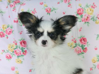 パピヨン ハウンドトライ(白黒茶の3色) ♂(男の子) 千葉県【 ブリーダーズ 】