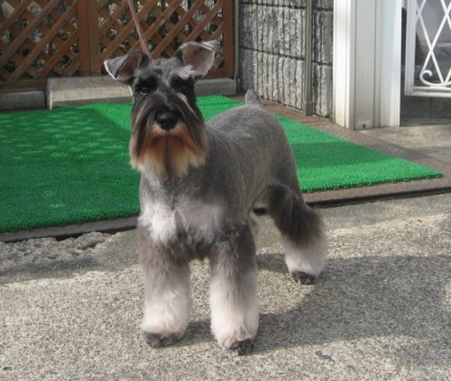 | コメント | 両親共に自家繁殖犬で、JKCチャンピオンの良血統です。 シュナウザーらしいアーモンド形の目が魅力的な女の子です。 性格は、大人しく人懐っこいタイプの癒し系! ショーに出すには、優し過ぎで不向きです。 人に寄り添うのが大好きで、おっとりタイプ。 サイズは、現在の体重7Kgで、標準サイズ スタイルも良く、見栄えのするシュナちゃんです。 同腹の姉妹が、2015年1月11日にドッグショーに出陳 デビュー戦でしたが、B・BIS(ベビィークラスでNo1) 受賞しました。 我が家自慢の血統構成の女の子です。 健康状態も良好で、今まで何一つ問題なく成長中です。 初期の躾・テーブルマナー・お散歩マナーも順調です。 我が家でのマナーですが、ショーマナーになります。 お手・お座り・伏せ等は教えておりませんので、ご了承ください。 心身共に一番良い状態でお迎え頂けます。 勿論すぐにお散歩もOKです。 写真は、2015年2月7日撮影です。 |