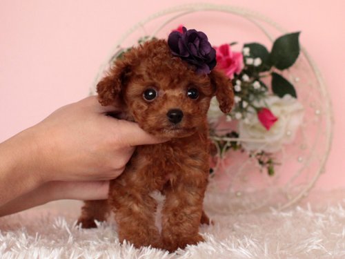 この度、宗様より念願のトイプードルレッドの赤ちゃんをお譲り頂きました。性格が穏やかな子犬です。 一匹一匹愛情込めて大切に育てられている様子がわかり安心して家族の一員にすることが出来ました。 子犬を大切に育てたいと思い、たくさん細かい質問をしてしまったのですが、丁寧に説明して下さり納得して決めることができました。 宗様のお人柄にも魅了されました。 これから、家族と共に幸せな時間が過ごせることを感謝し、成長した姿も見て頂きたいです。本当にありがとうございました。(神奈川県 女性)