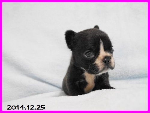 | コメント | パパはJKCチャンピオン直子のグッチ君(ハニーパイド)。 ママはアメリカチャンピオン直娘のプラダちゃん(ブリンドル) 子犬ちゃんは一人っ子ちゃんです。 小ぶりなサイズで、成犬時のサイズはママと同じくらいの6~7キロくらいかと思います。 お引渡し出来るのは生後2か月になる2015年1月23日頃を予定しています。 ワクチン接種と健康診断を実施後にお渡しいたします。 お問い合わせをお待ちしております。 |