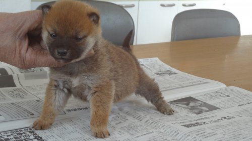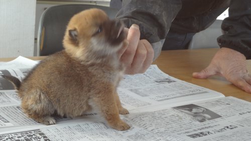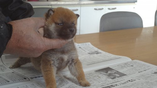 初めて見学で伺った際に、並んで日向ぼっこをしている親犬たちを見て、その時点で高橋さんなら安心だと感じました。事前に希望していたこともあり、母犬と父犬を先に見せていただきましたが、母犬のあまりの人懐こい性格にやられてしまい、実は子犬を見る前に是非譲っていただこうという気持ちになっておりました。 見学の時、譲渡の時といろいろな話をさせてもらい、小さな気付きなども折り込んで教えてもらえるのでやはり柴犬ならこうした専門の方が信頼出来ます。 子犬が我が家に来て二週間が経ち、きょうだいのなかでも一回り小さかったこともあり、やはり成長もやや遅い感じではありますが、母性を刺激された先住犬が頑張って見守ってくれており、予想外ではあるものの家族全員一安心です。 この度は本当にありがとうございました。この子が幸せになれるよう精一杯向き合っていきます。 なお、今後検討されている方への注意事項をひとつだけ書いておきます。問い合わせや見学希望に対しての高橋さんからの返信は電話です。メールでの返信ではありませんので気を付けてください。(宮城県 男性)