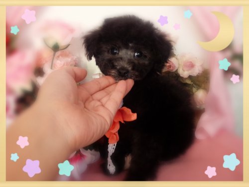 ブラックの男の子のトイプードルを探していました。こちらで見つけ問い合わせをしたところ、永谷ブリーダーからすぐに連絡があり、こちらのいろいろな質問にも丁寧にお答えいただいたので、本当に安心してピースを迎える事ができました。空港にてケースの中の小さいピースに感動と感謝で家族全員泣いてしまいました(笑)この子に会えて心から良かったと思える瞬間でした。2人の子ども達とも仲良く遊びまわり、よく食べよく寝る元気な末っ子です(笑)みんなを笑顔にしてくれるピースが楽しく幸せに暮らせるように、大切に成長を見守っていきます。本当にありがとうございました。(大阪府 女性)