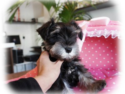 シュナウザーを主力にされているブリーダーさんだと認識しており、ボスちゃんはどうかなあと正直不安でしたがとても可愛く健康的なボスちゃんをいただきました。 掲載されていた写真より実物は想像以上に可愛くて即決し見学させていただいたその日に連れて帰りました。連絡をして、翌日行きますぅって勝手な申し出にも関わらず敏速かつ親切に対応して頂き大満足です。契約に対しても一つ一つ丁寧に説明してくださり、わかりやすかったです。この度は可愛いボスちゃんとのご縁をいただき、本当に有り難うございました。 (大阪府 女性)
