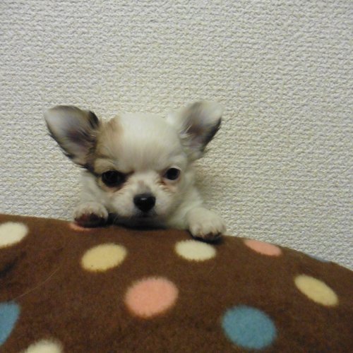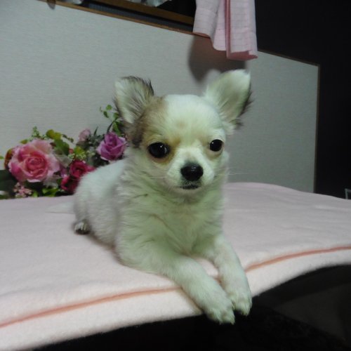 | コメント | 10月2日午前10時55分に90gで誕生しました。 ひとりっこです。 1/7現在 体重は508gです。 1/17 現在 体重は550gです。 1/26 現在 体重は568gです。 2/4 現在 体重は605gです。 2/13 現在体重は638gです。 3/5 現在体重は751gです。 3/20 現在の体重は888gです。 3/29 現在の体重は970gです 将来的には1.5kg~2kgかと予想しています。 とても人間が大好きで活発で明るい性格です。 犬種図鑑には仲間や家族にはとても愛情深く 見知らぬ人に対しては 内気家族の長になるのを好むが 一度順応すると他の者を大目にみ る。 好奇心旺盛だが気まぐれで神経質になりがちな面が有り機敏で 清潔好きな犬であると記されています。飼い方にもよりますしすべて の子にあてはまるとも思えませんが間違ってはいないと思います。 同じく犬種図鑑には泉門の有る子もいます 眼と眼の間は離れている と記されていてアップルドーム頭蓋の多くの子はモレラが有ります。 この子も今の段階では泉門が有ります。 向かって右目、この子の左目の目ぶちが無く、今の段階では薄いままな のかな?と思われます。 オーバーショットです(上の歯が出ている)外観以外の問題はありません。 外観もあまり気にならない程度だと思います。 構成、お顔、歩様も良いと思います。 父の体重は2,3kg位でインターナショナルチャンピオンの子供です。 母の体重は2,8kg位で優しい利口な子ですよ。 成犬時は2,3~2,8㎏前後だと思っています。 *直接見に来られて購入される事を希望しますが、遠方の方 又事情で来られない方へ写真、動画等を送らせて頂きます。 詳細な情報を正直にお伝えしたいと思いますのでお気軽に ご連絡下さい。 *9月1日から法律が対面販売となりますので一度でも見学のお越し をお願いいたします。 *遠方の方でも交通費をご負担いただきましたら、スタッフがお 近くまでお届けに伺います。ご相談下さい。 |