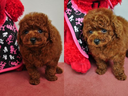 キュートでフレンドリーな仔犬が来ました! 先にいるプードルたちとも5分で仲良しになりましたし、かわいい仕種やアイコンタクトも十分で、ブリーダーさんの愛情がいっぱい入ってる事がすぐにわかりました。 良く食べて、良く遊び、よく寝ます。夜泣きもないし、100点満点です。 「非常に良い」の上をつけたいほどです。 これからも活躍してください!(神奈川県 女性)
