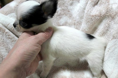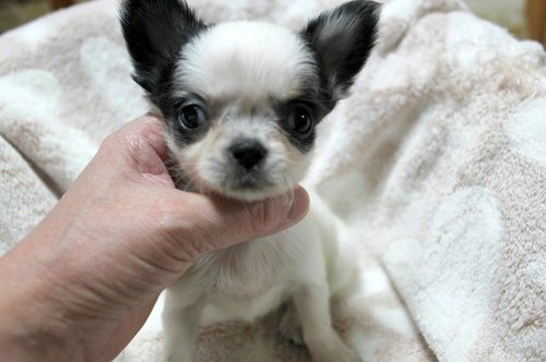| コメント | パパ (パーティー)2,5キロ ママ (ブラックタン) 2.3キロ 良血統の両親から生まれた可愛い白黒ちゃんです。 現在はふやかしフードもしっかり食べれております。 現時点での欠点などはありません。 仔犬のご成約の際には、 ※ 血統書(作成が間に合わなければ後日郵送します。) ※ ワンちゃん母子手帳 ※ 今食べてるフード1キロ ※ おもちゃ ※ 初回ワクチン無料 (証明書あり) などがサービスとなっております。 すてきな出会いをお待ちしております。 |
