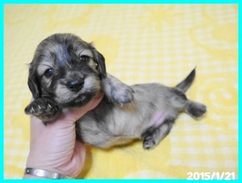 亡くなった愛犬達と同じ、 ワイヤーダックスの子犬を探していましたが、珍しい犬種という事もあり、 なかなか出会えませんでした。 諦めかけた頃、こちらのサイトで可愛い子犬を見つけ、思いきってメールをさせて頂きました。 遠藤ブリーダー様の迅速丁寧な対応で、 お陰様で無事に子犬を迎える事が出来ました。 本当にありがとうございました。 ブリーダーズ様にも感謝致します。 (北海道 女性)