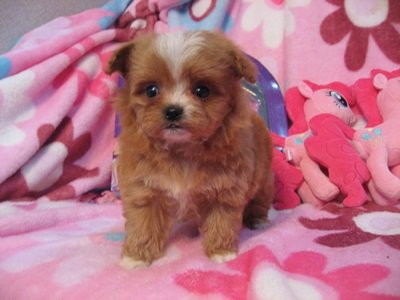 | コメント | 小ぶりな子です 父・・・チワワ・パーティー 小ぶりな子です 母・・・プードル・レッド 子育て上手な優しい子です 毛ぶきがもこもこです お顔も詰まっていてお目目もまんまる で全体が丸っこい感じで可愛いです ドワーフな体系でよちよち歩く姿が とても愛らしい子です 大人になって2㎏前後の小さい サイズの仕上がり予想です |