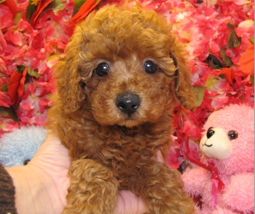 | コメント | 毛量が多く、モコモコの女の子です。 レッドでくりくり巻きの子犬です。 生後46日の体重は890グラム。 成犬時の予想体重は3.5キロ前後のタイニーサイズです。 かわいい子犬です。 毛量が非常に多いので将来はテディーベアが似合うかわいい子になります。 おとなしくてやさしい性格ですので飼いやすいと思います。 9種ワクチン接種1回サービス。子犬代は表示価格だけです。 シャンプーなどで使用する、子犬用スリッカーブラシもサービスしております。 各種カードもご利用できます。 父親 : 1.8キロ レッド 母親 : 3.5キロ レッド 現在たくさん生まれて20匹ほどおりますので、ぜひぜひ見学においでください。 最近トイプードルで目が白濁して失明に至る、遺伝性のPRAが流行っていますが、うちの犬舎では一件も出てませんのでご安心ください。 うちの子犬は全員トイレのしつけ済み。見学に来た人は「ちゃんとトイレでしてるーっ。おりこうだねー。」と皆さん感心していらっしゃいます。 もちろんこの子たちもできています。 ペットショップなどで見かける、ウンチの上で平気で寝ているような子犬を飼うと、おうちでのトイレのしつけはかなり難しくなります。 犬は心のパートナー。 「吠えない、噛まない、かじらない。」は室内犬として絶対条件です。 先日「別のペットショップでトイプードル飼って1ヶ月。」 という奥様が飛び込みで来られましたが、「家中のものを噛んでソファーもテーブルの足もじゅうたんも、みんなボロボロにされて、最近は奥様の手も噛むようになってきて、怖くなってきた。」とたいへんお困りの相談に来られました。 その場でしつけ方のお話をさせていただきまして、5日後には子犬を連れてきて「やっと抱っこして出られるようになって、家の中でもいい子になりました。」とお礼に来られました。 子犬の性格にもよりますが、このような暴れん坊になってしまうこともあります。 絶対にこのような暴れん坊の犬に育ててはいけません。 うちでは基本的に子犬は必ず1匹ずつゲージに入れて展示しています。 2匹ずつケージに入れた状態で皆様のご家庭に1匹だけで飼われたときに、寂しさから夜中でもキャンキャン泣き続ける子犬がおりました。 そこで今では必ず1匹だけでケージに入れて置くようにしております。 これで「一人で生活する。」 ということに慣れた状態でお引渡しになりますので、皆様のお宅でキャンキャン泣いて騒がせることはほとんどなくなりました。 家庭や一般社会の中でみなさんにほめられる、すばらしい犬。 最高にマナーの良い犬に育てられるよう、1時間ぐらいしつけのお話をさせていただきます。 犬の気持ちや本能が理解できて、必ずいい子に育てられます。 ご家族全員でおいでいただけましたら幸いです。 茨城県龍ヶ崎市。お車の方は常磐高速→ 圏央道2つ目(牛久阿見龍ヶ崎)を降りたらどこも曲がらず一直線に8~9キロ。左に看板が見えてきます。 東京から1時間ちょっと。4車線の大通りに面しているのでカーナビ一発で来ます。 電車の場合は常磐線佐貫駅東口。決まらなくても駅まで必ず送迎しますのでご連絡ください。 「見学ご希望があっても、別の方からご予約金の振込みなどがあった場合は、そちらに決まってしまう場合があります。 あらかじめご了承ください。 |