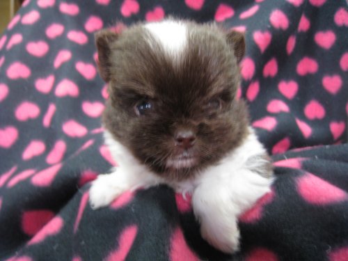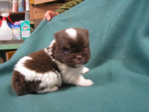 ポメラニアン チョコアンドホワイト ♂(男の子) 岡山県【 ブリーダーズ 】
