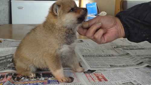 初めて見学で伺った際に、並んで日向ぼっこをしている親犬たちを見て、その時点で高橋さんなら安心だと感じました。事前に希望していたこともあり、母犬と父犬を先に見せていただきましたが、母犬のあまりの人懐こい性格にやられてしまい、実は子犬を見る前に是非譲っていただこうという気持ちになっておりました。 見学の時、譲渡の時といろいろな話をさせてもらい、小さな気付きなども折り込んで教えてもらえるのでやはり柴犬ならこうした専門の方が信頼出来ます。 子犬が我が家に来て二週間が経ち、きょうだいのなかでも一回り小さかったこともあり、やはり成長もやや遅い感じではありますが、母性を刺激された先住犬が頑張って見守ってくれており、予想外ではあるものの家族全員一安心です。 この度は本当にありがとうございました。この子が幸せになれるよう精一杯向き合っていきます。 なお、今後検討されている方への注意事項をひとつだけ書いておきます。問い合わせや見学希望に対しての高橋さんからの返信は電話です。メールでの返信ではありませんので気を付けてください。(宮城県 男性)