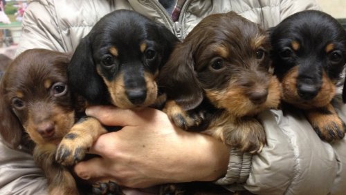| コメント | 2015年1月11日生まれ、ワイヤーダックスフンド 毛量少なめの男の子です。 母犬:ブラック&タン 父犬:チョコレート&タン 両親共に明るく人間も犬も大好きで甘えん坊な性格です。 母犬・父犬・お祖母ちゃん犬まで一緒にご見学いただけます。 ダックスの中では一番毛が抜けにくい毛質です。 良縁に恵まれることを願っております。 |