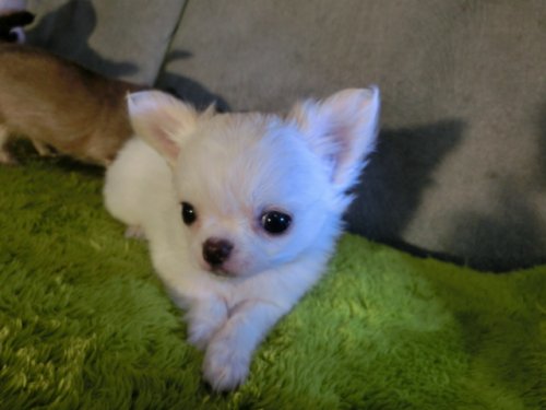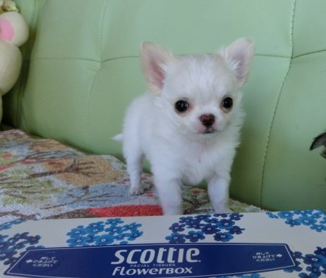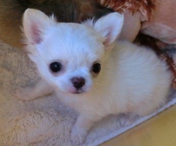 チワワ(ロング) ホワイトクリーム:人気のホワイトクリーム黒アイラインの目直角短い鼻の激可満載! ♂(男の子) 熊本県【 ブリーダーズ 】