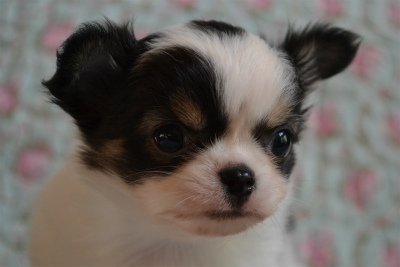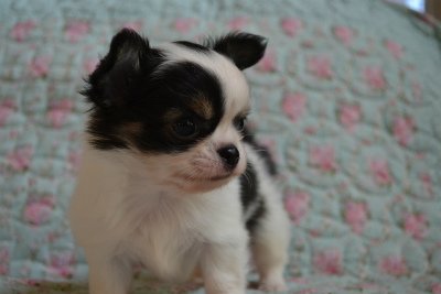 | コメント | とっても可愛い犬質の高い男の子です。 真ん丸な頭に大きなどんぐりお目々、でこっぱちに短いお鼻でママによく似た子です。 サイズはコンパクトなのですが、骨太で四肢がしっかりしている子ですので、将来は体重の割にコンパクトな子になると思います。 また毛量もしっかりとありますので、チワワらしいコートの子になると思います。 毛色も白地に黒い模様ですので、将来はパッと人目を引く派手な雰囲気になる事でしょう。 現時点で見当たる欠点はありません。 チワワは欠歯が多いのですがこの子は完全歯、噛み合わせも正常です。 当方ではお引き渡しまでに2回の健康診断を行っております。 募集前に行った健康診断は異常なしでした。 性格はとっても人懐っこく、尻尾フリフリの甘えん坊。 手を差し出すとペロペロと嬉しそうに舐めるペロペロ魔です(笑) とっても性格の良い子に育っておりますので、初めてワンちゃんを飼育される方にもオススメなタイプの子です。 血統内容はパパが世界で活躍する有名犬舎様の血液100%で出来たチャンピオンの息子です。 有名犬がズラリと並んだ血統です。(パパの同胎犬はショーチャレンジ中です) ママはJKCチャンピオンです。 ご質問やご見学など、どのような小さなことでもお気軽にお問い合わせください。 生涯家族の一員として大切に可愛がってくださる方とご縁があると嬉しいです。 |